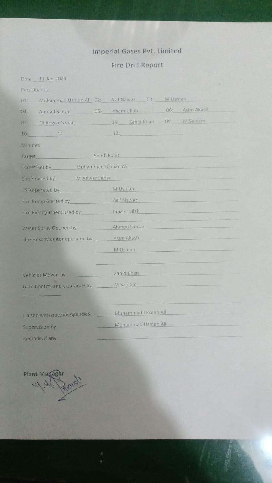 Imperial Gases limited FIRE DRILL ACTIVITIES